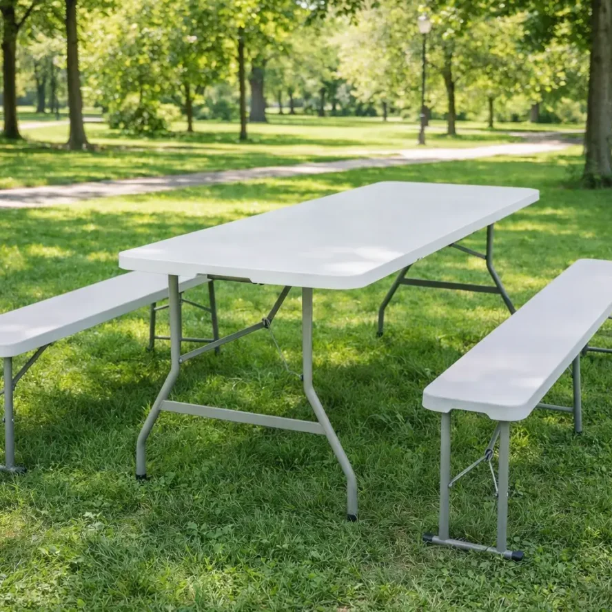 Location de tables avec bancs, tables enfants avec chaises, barnums 3×3, rallonges électriques et équipements essentiels pour l’organisation de vos événements.